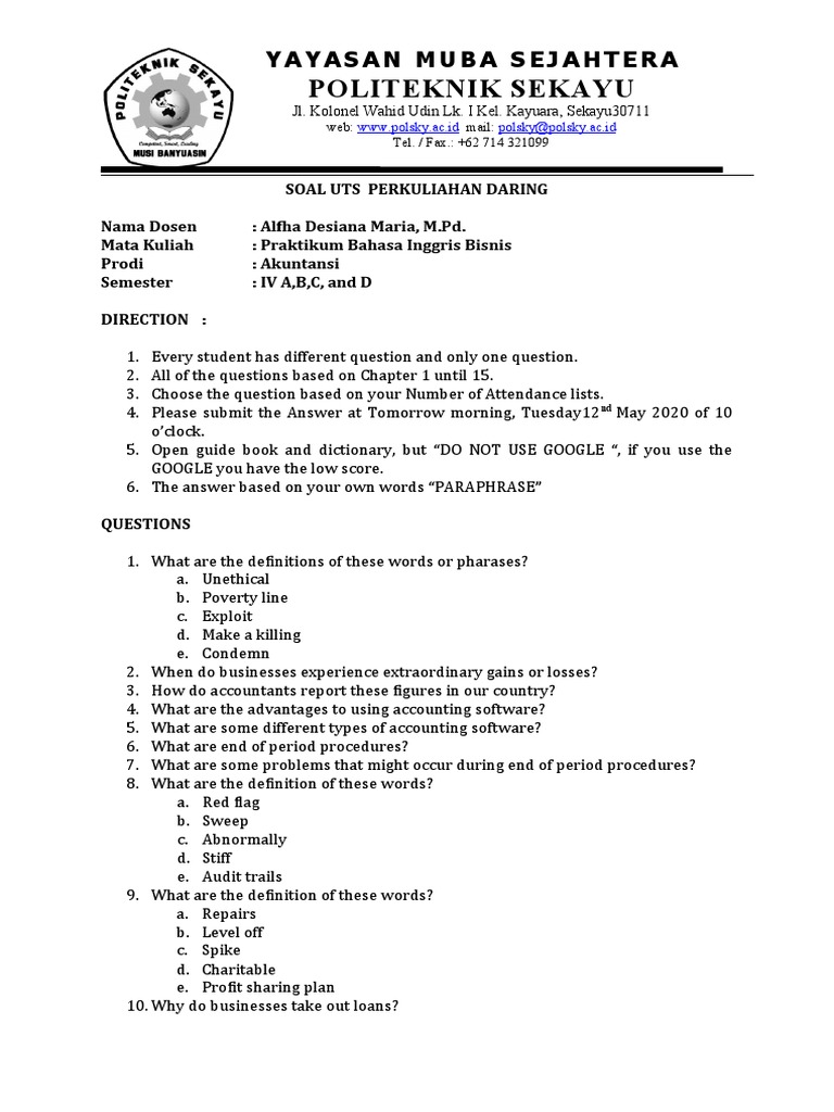 Soal Akuntansi Bahasa Inggris - Latihan Soal Bahasa Inggris : We did not find results for:. Maybe you would like to learn more about one of these? Check spelling or type a new query. We did not find results for: